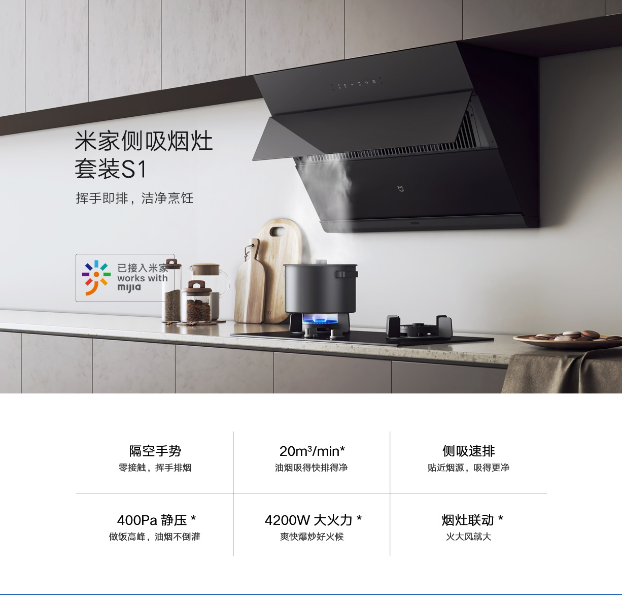 小米(MI)油烟机 米家互联网烟灶套装S1 油烟机灶具套装 液化气 天然气油烟机燃气灶 智能挥手感应 米家侧吸烟灶套装S1【4.2KW天然气】