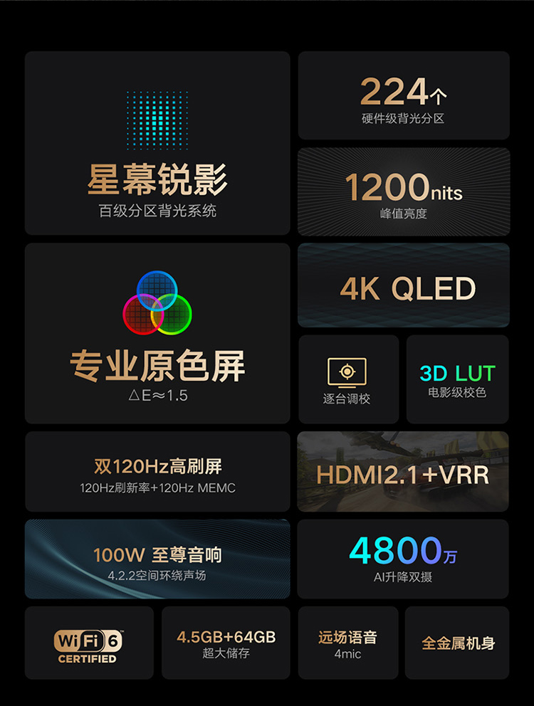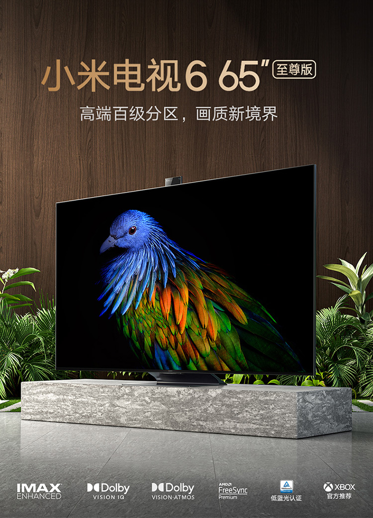 小米电视6至尊版65英寸 4K QLED 百级分区背光 4.5+64GB 远场语音MEMC防抖 游戏智能电视机